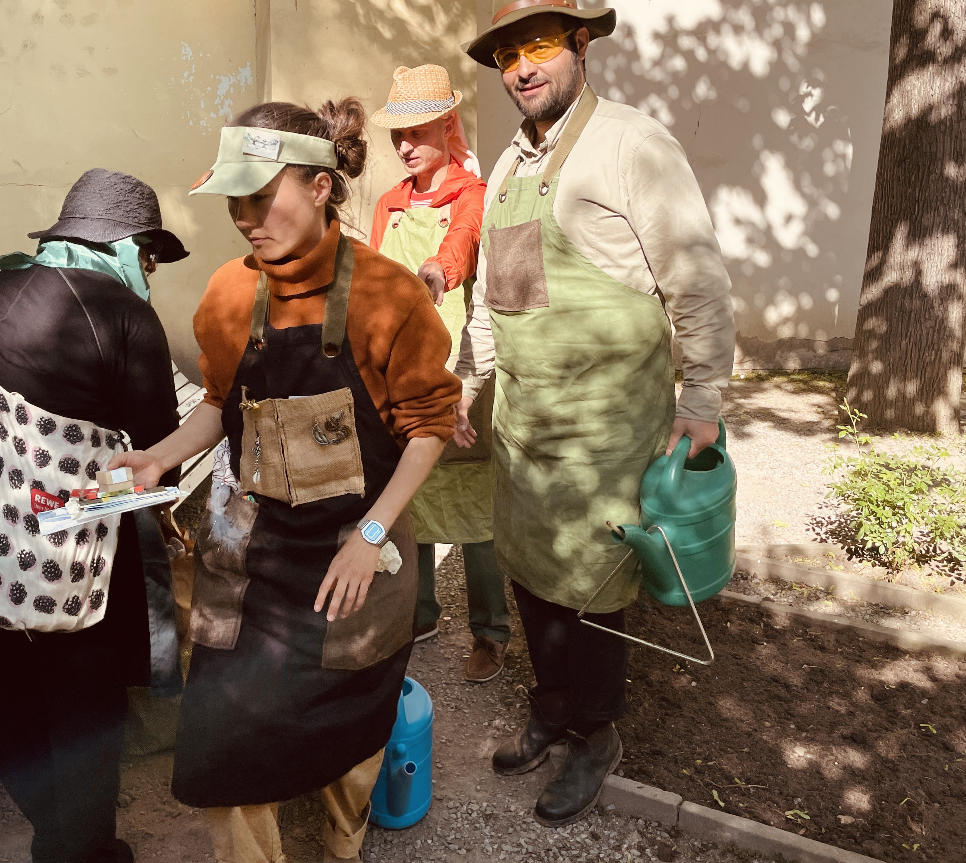 [ENG] Costume design and textile surfaces. Five countrymen were imagined dancing naked and drunk across a field in the countryside. During the party their bodies and clothes are transformed, violently, by natural forces.