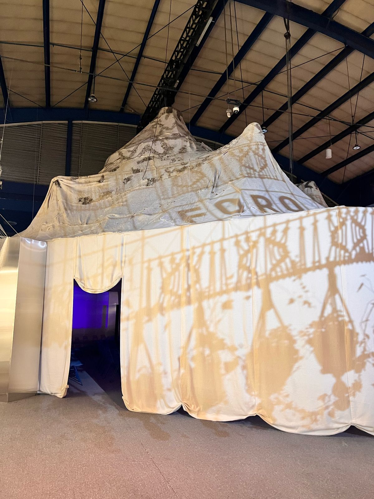 Coordinación de 1.400m2 de tejidos en lana (afieltrado y tejido horizontal) para los auditorios del pabellón, junto a más de 30 artesanas y artesanos de Sutatausa, Cundinamarca. 100m2 de tejidos en fique que cubrían las tarimas del pabellón, junto a la Cooperativa Ecofibras de Curití, Santander.